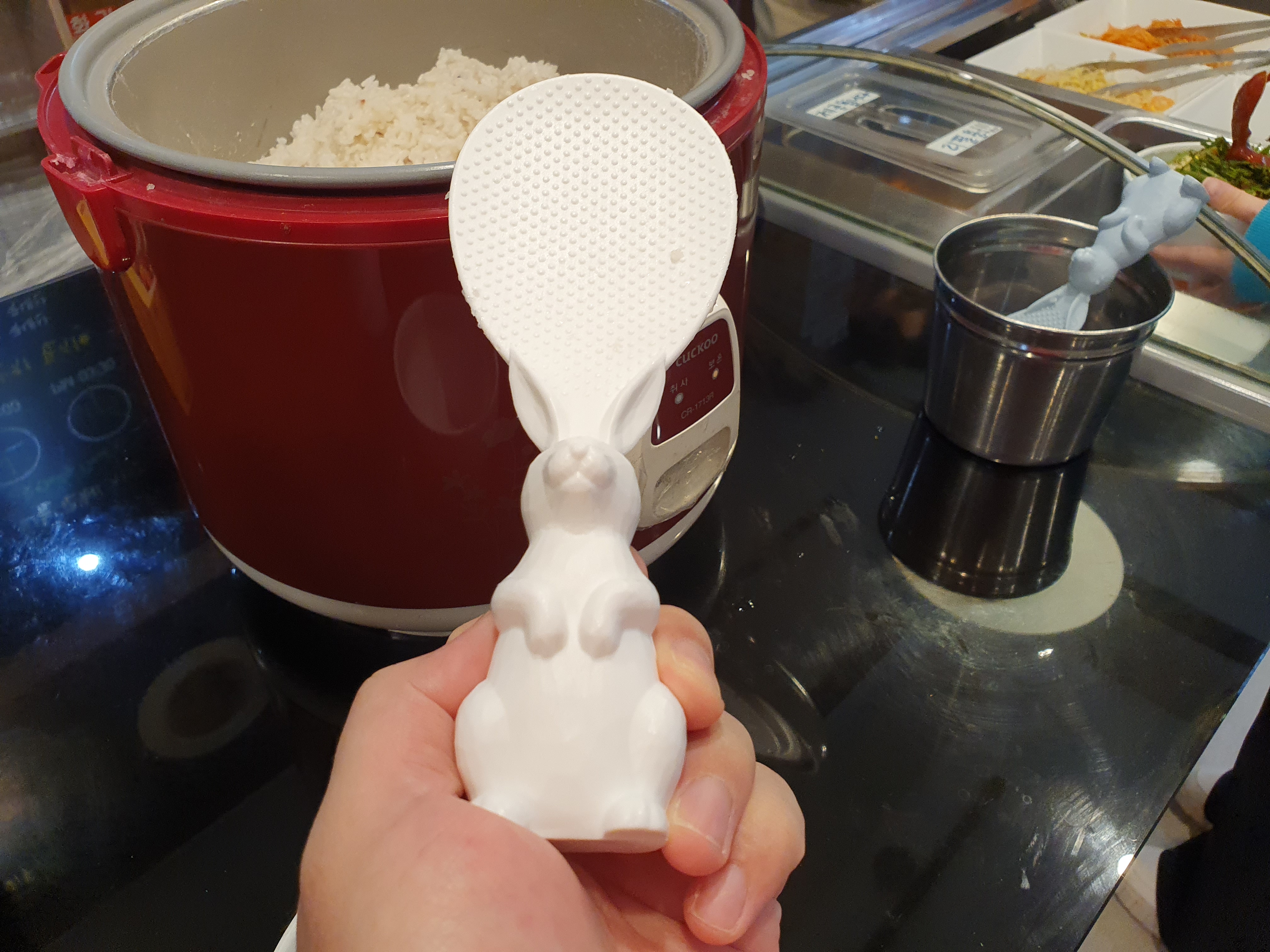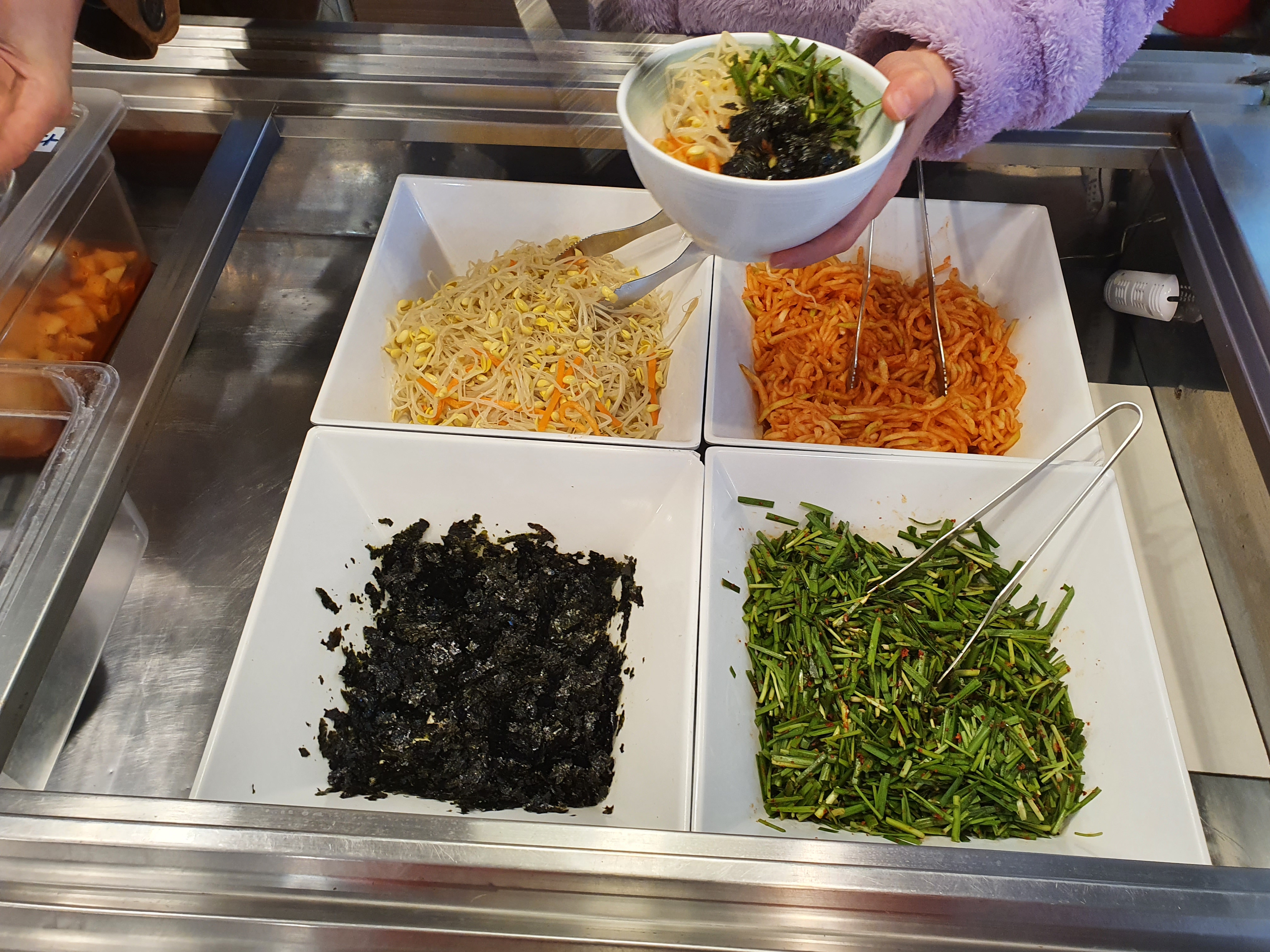 비빔밥을 셀프로 담아 먹을 수 있어요.